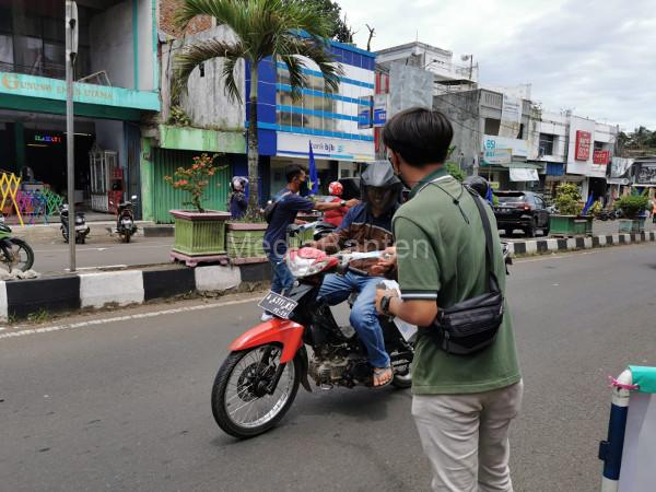Di lokasi ini, sejumlah pengguna jalan dan masyarakat sekitar yang kedapatan tak memakai masker pun tak luput diingatkan supaya tetap patuh melaksanakan prokes secara ketat.
