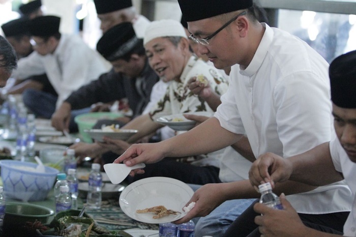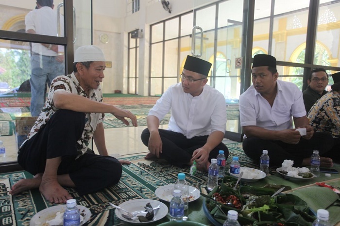 Acara pun ditutup dengan makan bersama dengan alas daun pisang yang digelar di teras masjid. Andika nampak berbagi nasi dari bakul yang sama dengan Embay dan Mulyadi Jayabaya. Sementara Ruki yang duduk berselang beberapa orang dari ketiganya, tampak menemani tamunya yang lain yang juga diundangnya di acara tersebut, Direktur Utama BJB Ahmad Irfan.