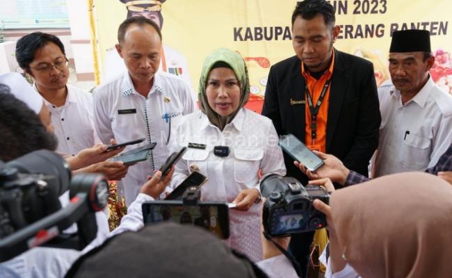 Bupati Serang Ratu Tatu Chasanah menyalurkan bantuan pangan untuk keluarga rawan stunting. Total penerimanya sebanyak 7.421 orang.