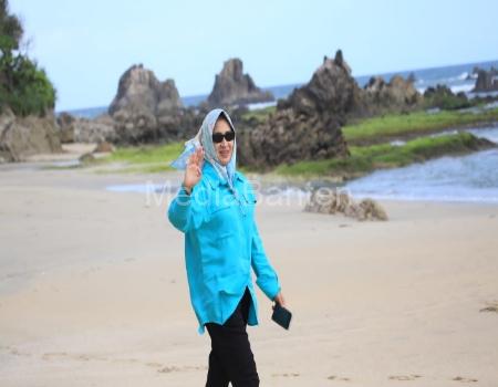 Mantan walikota Tangerang Selatan sekaligus bakal Calon Gubernur (cagub) Banten, Airin Rachmi Diany berkesampatan melihat dan menikmati gugusan pantai di Kabupaten Lebak.