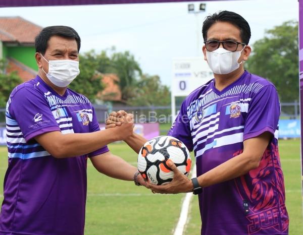Sekda Kabupaten Tangerang, Moch Rasyid melakukan tendangan pertama di titik tengah lapangan Stadion Mini Petal Kecamatan Sukadiri, Jumat, (19/11/2021). Tendangan itu sebagai tanda dibuka dan dimukainha Tangerang Junior League (TJL).