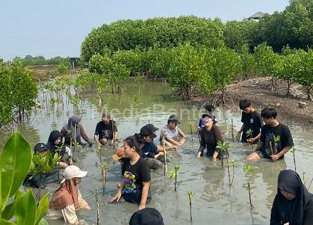 Para mahasiswa Untirta bersama masyarakat setempat bekerjasama menanam bibit mangrove. Penanaman ini bertujuan untuk mengembangkan ekosistem pesisir, mencegah abrasi pantai, dan menyediakan habitat bagi berbagai jenis fauna laut.