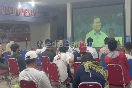 Acara nobar tersebut digelar di rumah kemenangan Prabowo-Gibran Banten, di Ciceri Kota Serang.
