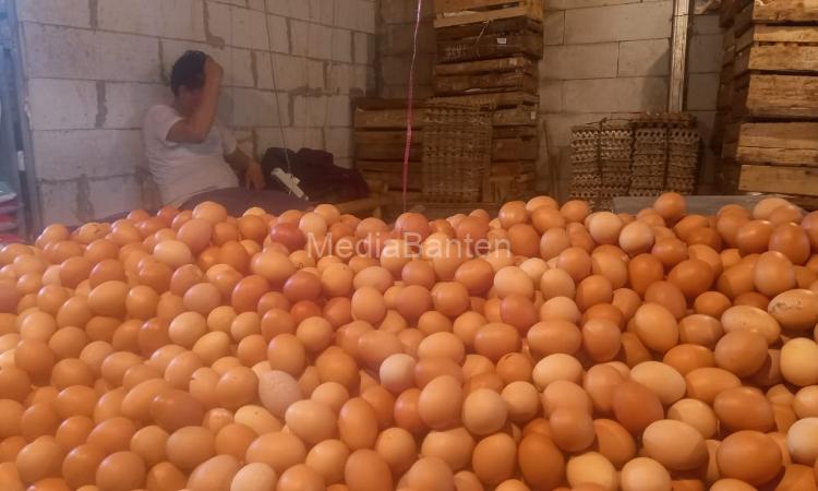Harga telur ayam di pasar induk rau (PIR) Kota Serang masih tinggi, harganya tembus mencapai Rp32 ribu perkilogram.