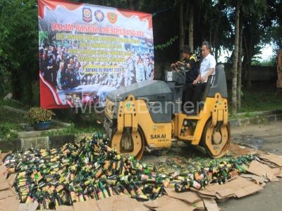 Ribuan miras ilegal itu hasil sitaan yang diamankan Pemkot Serang melalui Satpol PP Kota Serang dimusnahkan langsung oleh Pejabat (Pj) Walikota Serang.