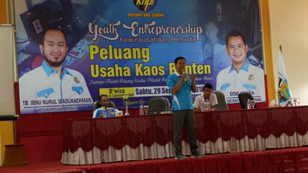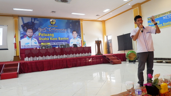 “Peluang usaha ini cukup unik. Di Bali, terkenal dengan kaos Balinya. Di Yogyakarta, ada yang namanya Dagadu dan kaos-kaos sejenisnya yang banyak di daerah lain. Nah, di Banten sebenarnya sudah ada sekelompok pengusaha muda yang menggagas branding kaos berciri khas kebantenan. Kita tampilkan penggagas dan pengusahanya,” kata Ibnoe Nurul Ibadurachman, Ketua DPD KNPI Kabupaten Serang.