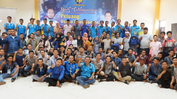 Dewan Pimpinan Daerah Komite Nasional Pemuda Indonesia (DPD KNPI) Kabupaten Serang menggelar diskusi Youth Enterpreneurship (Kewirausahaan Pemuda) tentang peluang usaha kaos Banten di Gedung D’wiza Resto di Copocok Jaya, Kota Serang, Sabtu (29/9/2018).