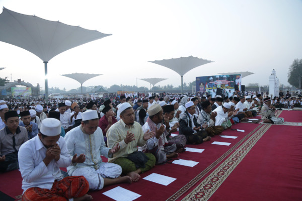 Pemerintah Provinsi (Pemprov) Banten menggelar istigosah dan apel akbar yang diawali solat subuh berjamaah di Kawasan Banten Lama, Kota Serang, Senin (22/10/2018). Istigoshah dan apel akbar itu untuk memperingati Hari Santri Nasional (HSN).