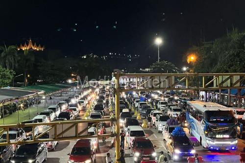 Pantauan di lokasi, para pemudik arus balik yang melakukan perjalanan dari Sumatera menuju Pulau Jawa masih terus berdatangan hingga pukul 00.48 WIB dini hari.