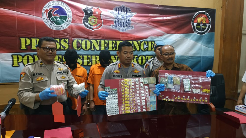 Kapolres Serang Kota AKBP Edhi Cahyono mengatakan, penangkapan kedua tersangka yang berinisial MYH dan MSI berdasarkan laporan masyarakat yang merasa resah dengan keberadaan obat-obatan terlarang tersebut.
