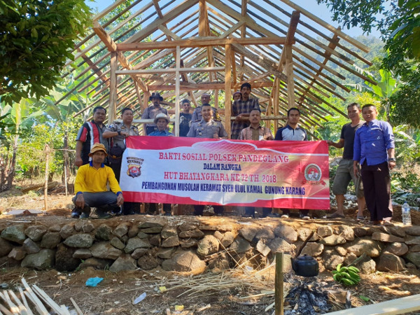 Kepolisian Sektor (Polsek) Pandeglang mereonasi Mushola Keramat Syech Ulul Kamal di Kampung Pasir Angin, Kelurahan Pager Batu, Kecamatan Majasari, Kabupaten Pandeglang. Selain kondisi mushola yang sudah memperihatinkan, kegiatan renovasi ini bagian dari kegiatan memperingati HUT Bhayangkara ke-72.