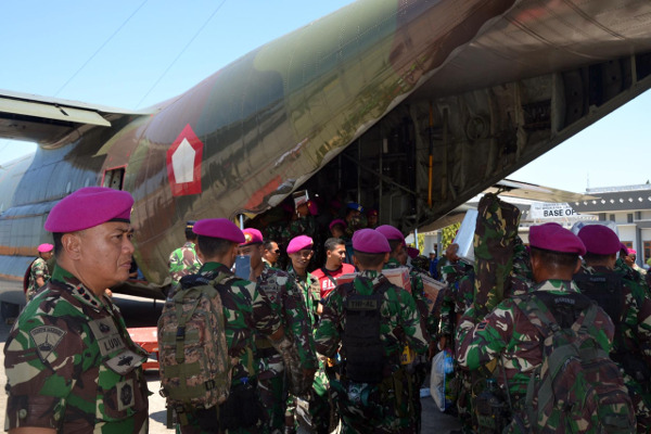 Hari ini, Kamis (4/10/2018), 300 prajurit dari Pasukan Marinir 2 Surabaya di bawah pimpinan Kolonel Marinir Arinto Beny Sarana diberangkatkan dengan menggunakan pesawat Hercules C 130 A-1316 dan A-1337 milik TNI AU dari Lanudal Juanda, Sidoarjo. Pemberangkatan pasukan ini terbagi dalam tiga sorti yaitu sorti pertama 100 prajurit, sorti kedua 98 prajurit dan sorti ketiga 102 prajurit.
