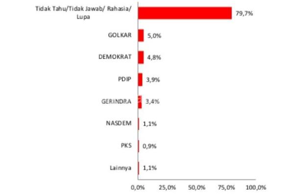 Sementara untuk responden yang tidak menjawab, tidak tahu, dan masih rahasia. hasil survei mencatat ada sekitar 79,7 persen.