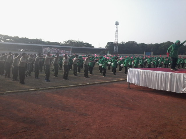 Danrem 064/MY Kolonel Czi Budi Hariswanto menyampaikan ucapan terimakasih kepada seluruh peserta Tari Gemu Famire yang dilaksanakan untuk memecahan rekor MURI pada HUT TNI ke-73. Karena dengan berolah raga badan kita akan selalu menjadi sehat.