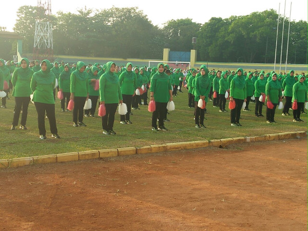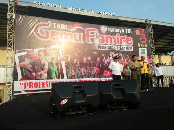 Tentara Nasional Indonesia (TNI) memecahkan rekor Tari Gemu Famire Kolosal yang dicatat Musium Rekor Indonesia (MURI) yang digelar di Stadion Maulana Yusuf (MY) Ciceri, Kota Serang, Selasa (4/9/2018). Tari kolosal ini mengerahkan 305.000 penari dalam rangka memperingai Hari Ulang Tahun (HUT) TNI ke-73.