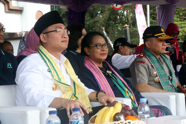 Wakil Gubernur Banten, Andika Hazrumy mendamping Menteri Pemberdayaan Perempuan dan Perlindungan Anak RI Yohana Sembise menghadiri Sosialisasi Tindak Pidana Perdagangan Orang (TPPO) Tahun 2018 bertempat di Alun – alun Barat Kota Serang, Minggu (23/9/2018).