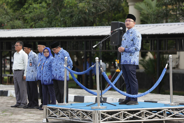 Hadir dalam upacara tersebut Pj. Sekretaris Daerah Banten Ino S. Rawita, para staf ahli gubernur, para asisten daerah, kepala OPD di lingkungan Pemerintah Provinsi Banten serta para pegawai di lingkungan Pemerintah Provinsi Banten. (Subag Peliputan dan Dokumentasi Biro ARTP Pemprov Banten)
